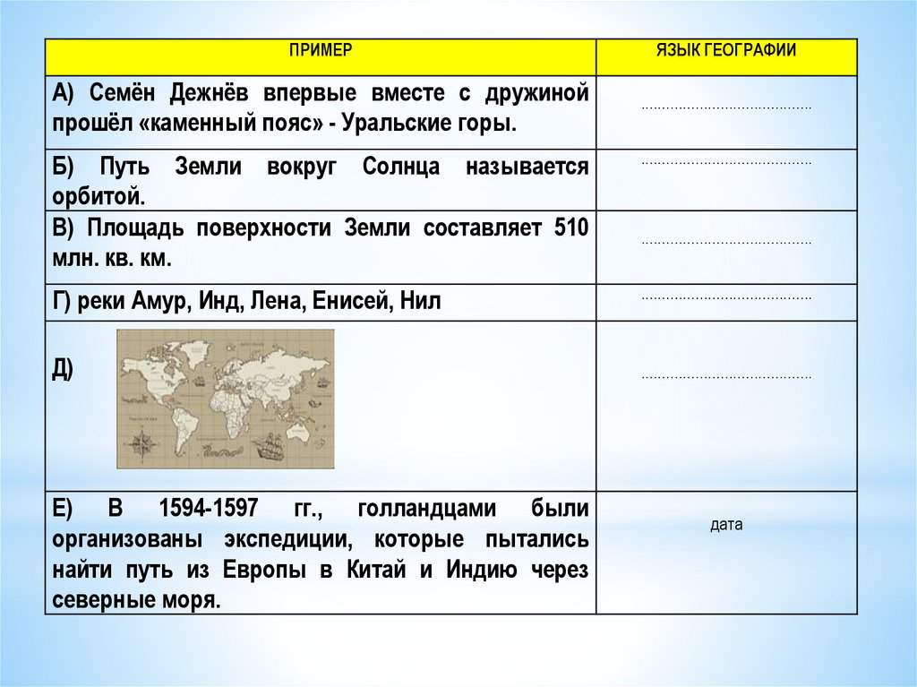 ПРИМЕРЯЗЫК ГЕОГРАФИИ