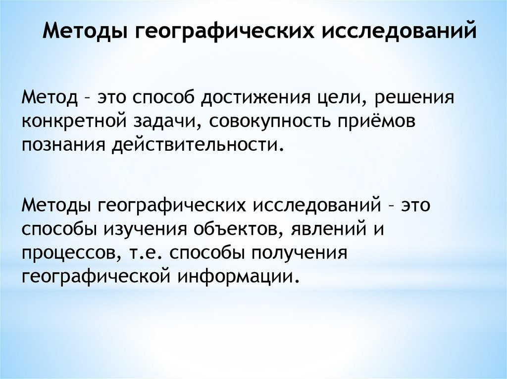 Методы географических исследованийМетод – это способ достижения цели, решения
