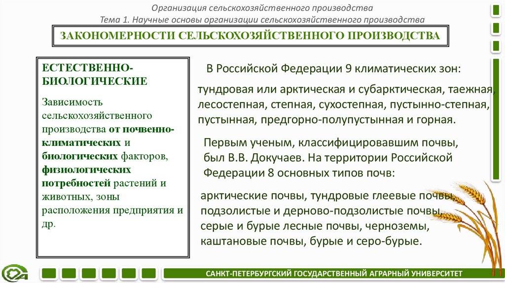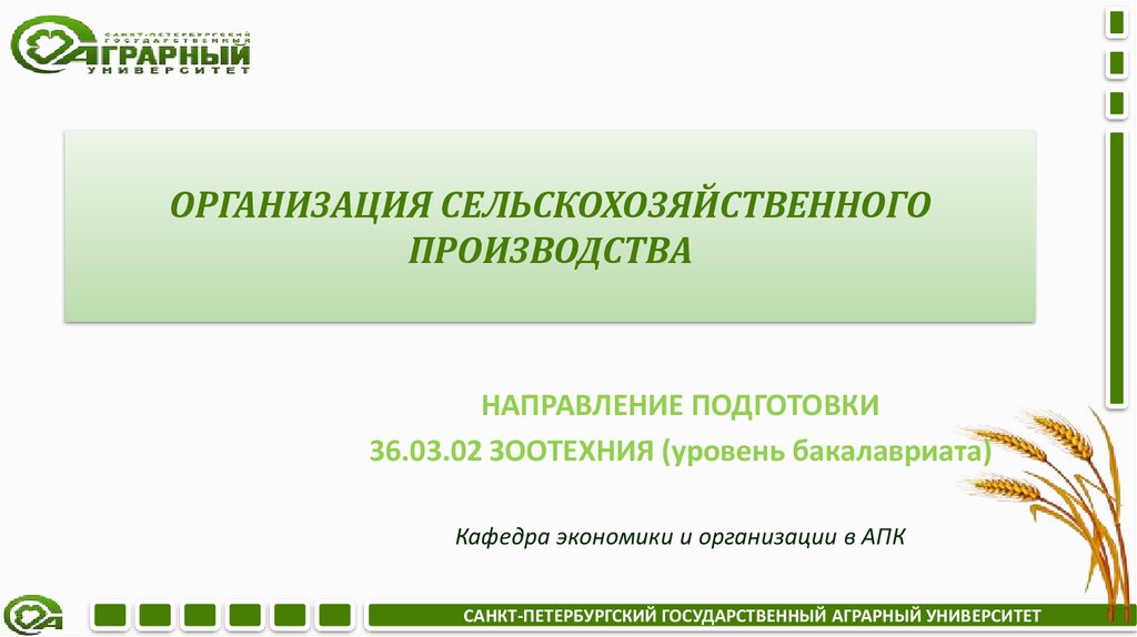 Организация сельскохозяйственного производстваОсновные темы курса: