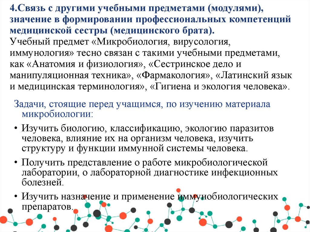 • 4.Связь с другими учебными предметами (модулями), значение в