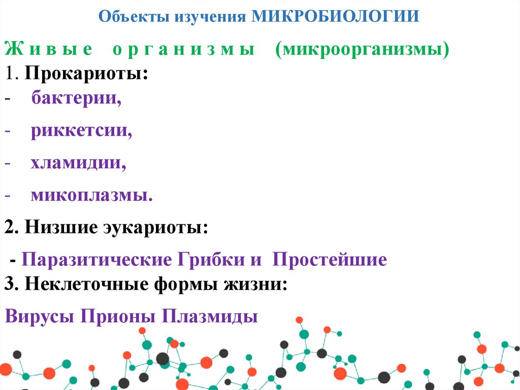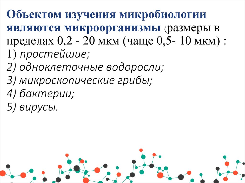• 1.Микробиология как наука, изучающая закономерности жизни иразвития микроорганизмов.
