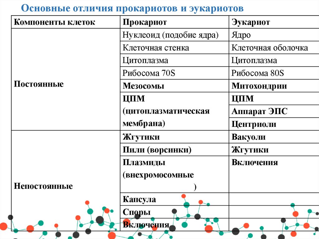 • 7.Различия в организации клеток прокариот и эукариот, основные