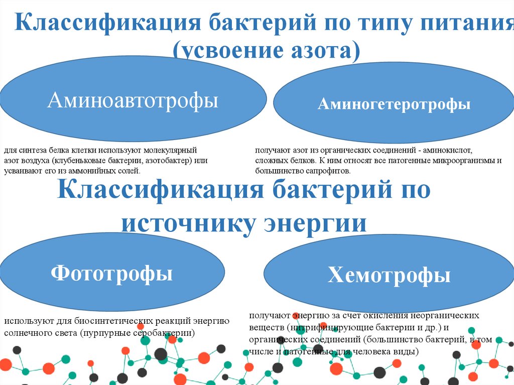 48. Классификация бактерий по типу питания (усвоение азота)