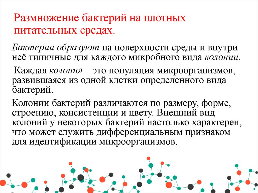 57. Размножение бактерий на плотных питательных средах.