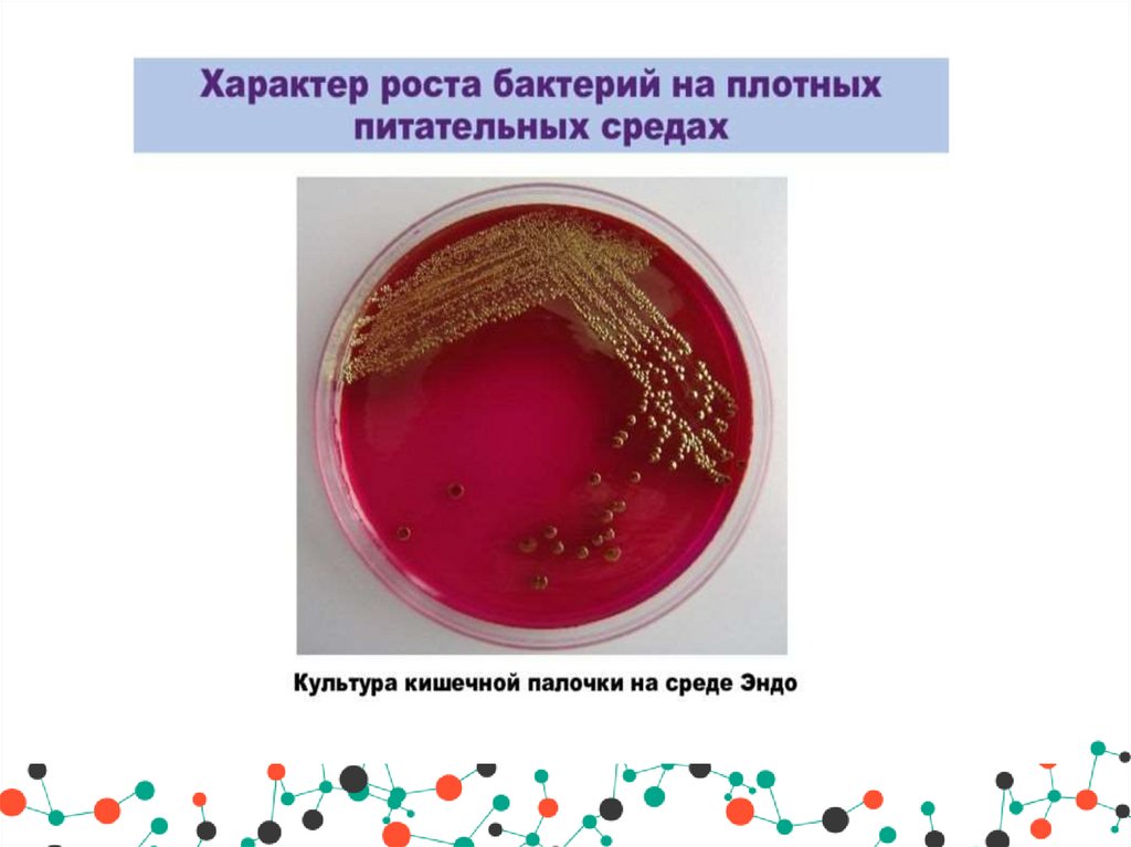 Бактерии образуют на поверхности среды и внутринеё типичные для каждого микробного вида колонии.