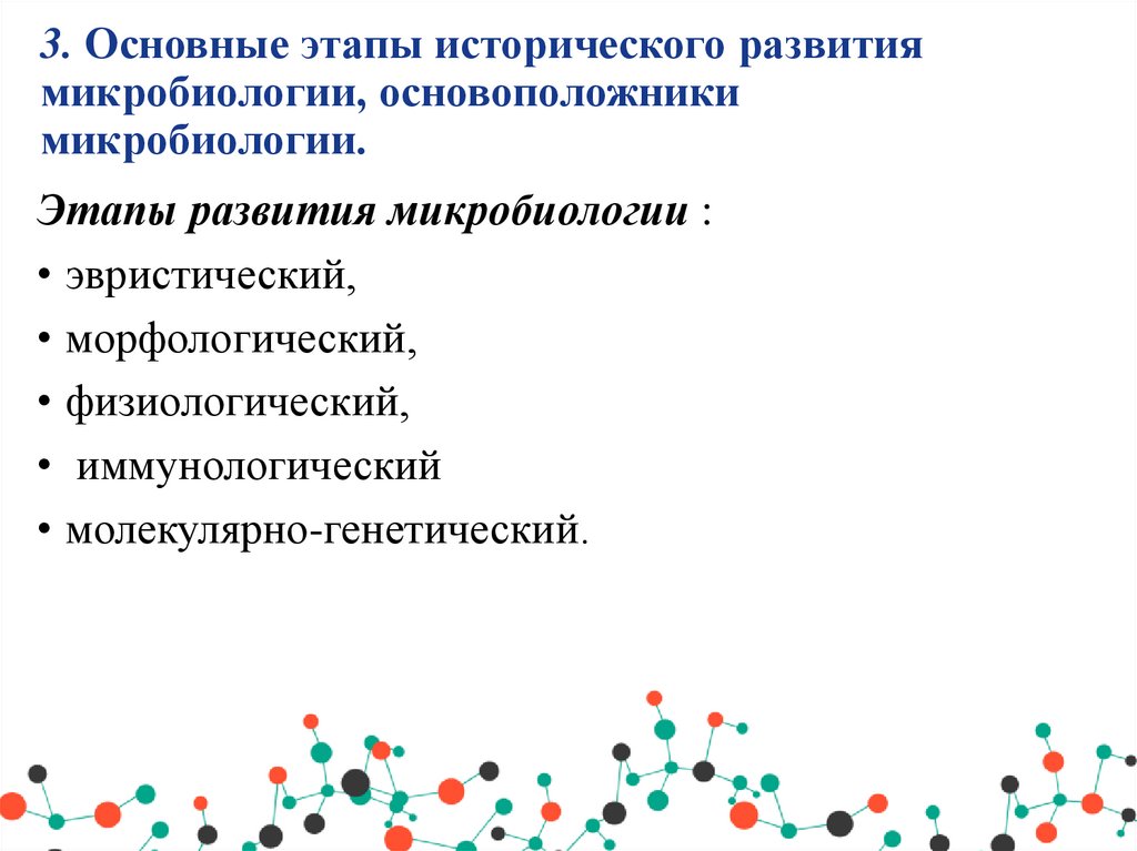 • 3.Основные этапы исторического развития микробиологии,