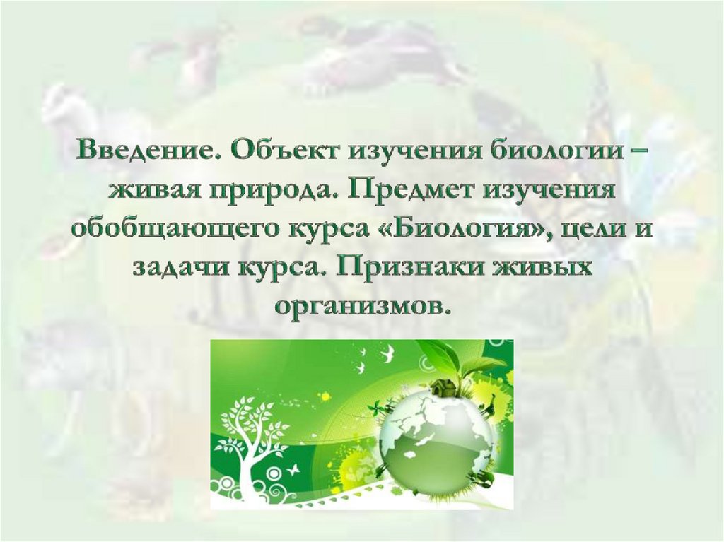 1. Введение. Объект изучения биологии – живая природа. Предмет изучения обобщающего курса «Биология», цели и задачи курса.