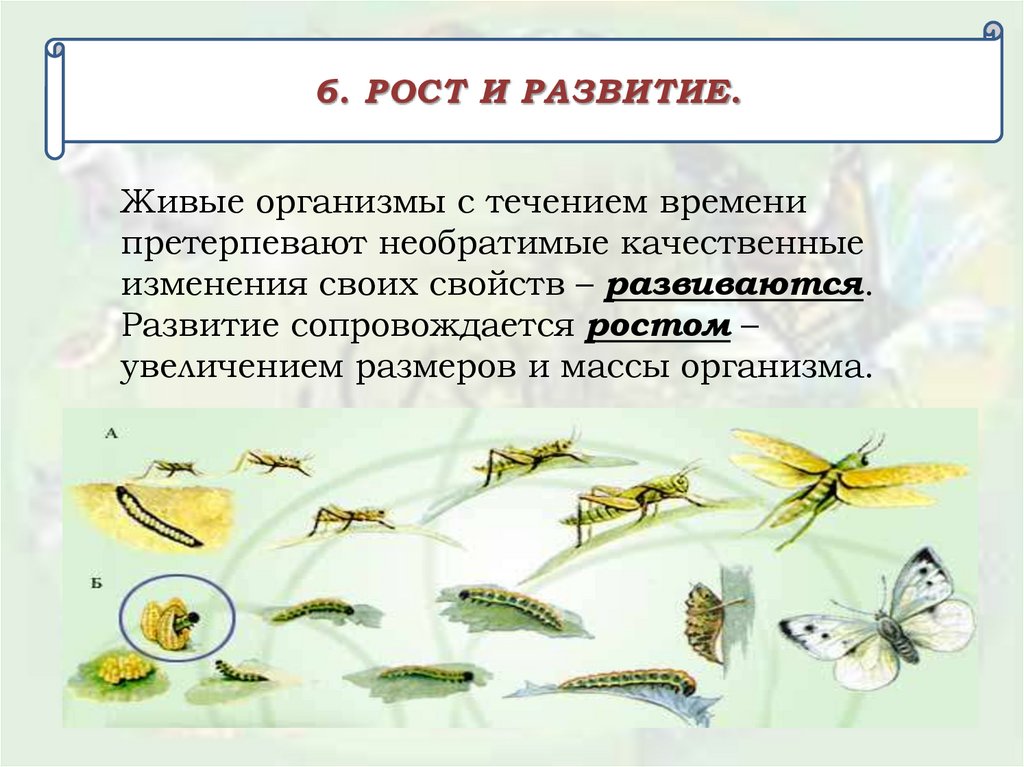 6. РОСТ И РАЗВИТИЕ.Живые организмы с течением времени