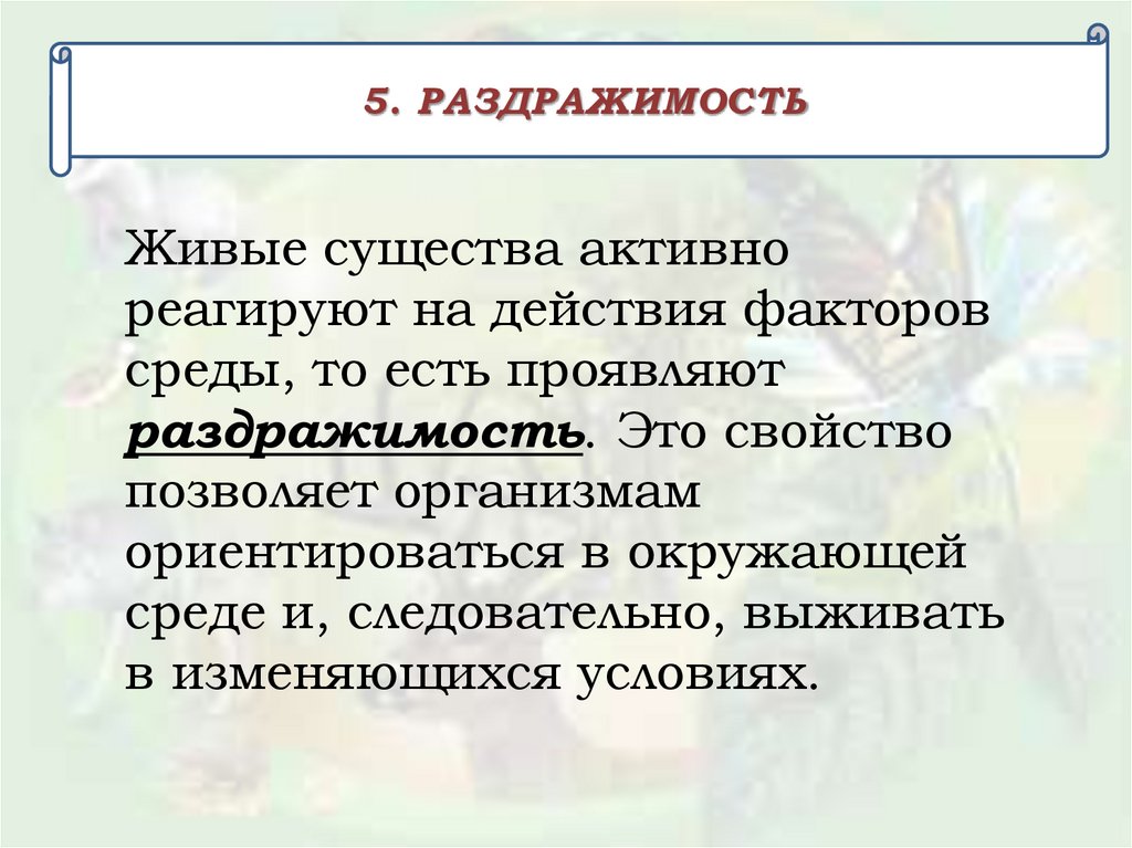 5. РАЗДРАЖИМОСТЬЖивые существа активно