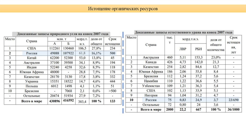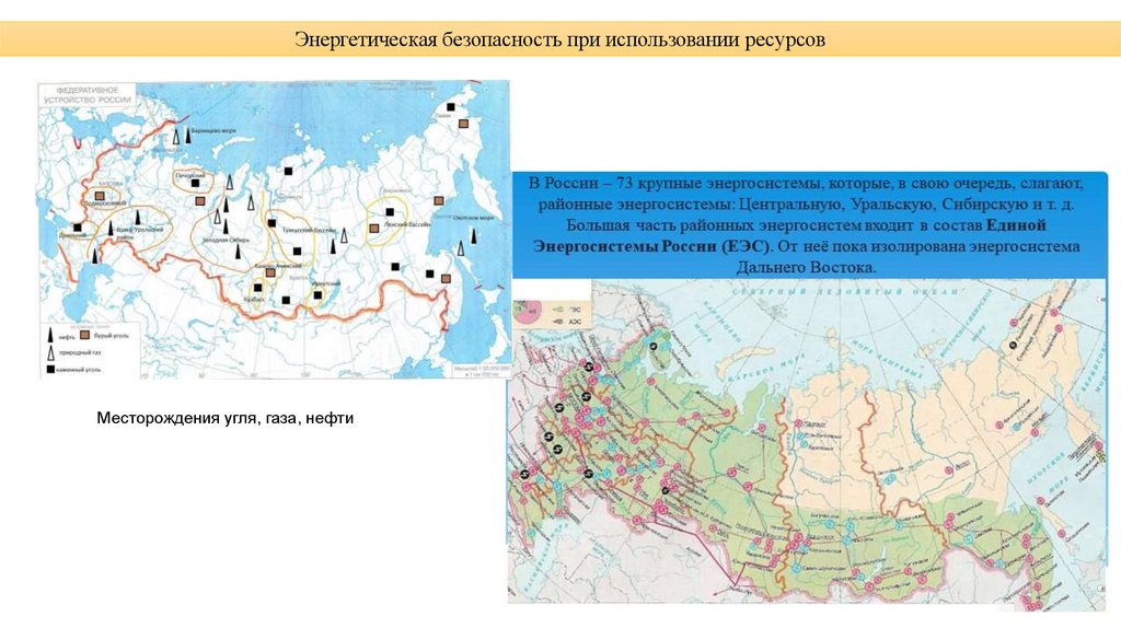 Энергетическая безопасность при использовании ресурсовМесторождения угля, газа, нефти
