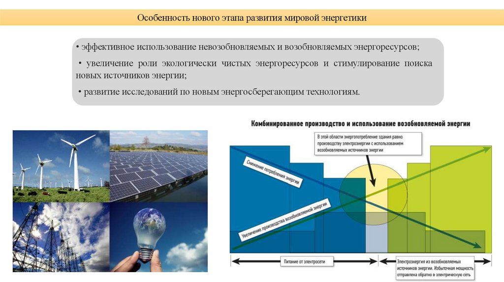 Особенность нового этапа развития мировой энергетики• эффективное использование невозобновляемых и возобновляемых энергоресурсов;