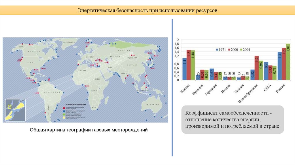 Энергетическая безопасность при использовании ресурсовОбщая картина географии газовых месторождений