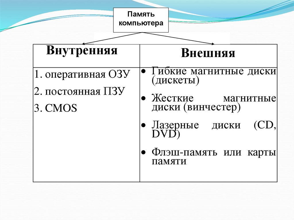 Энергонезависимая память хранит информациюпостоянно, даже после выключения компьютера ПЗУ (ROM – Read Only Memory, память только для