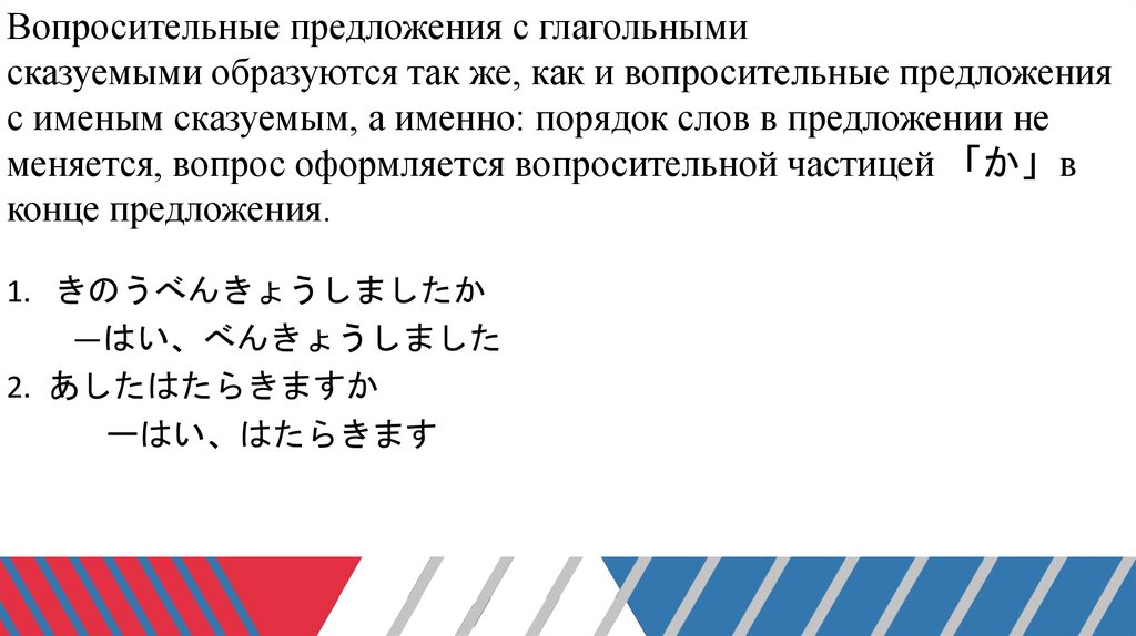 Вопросительные предложения с глагольнымисказуемыми образуются так же, как и вопросительные предложения