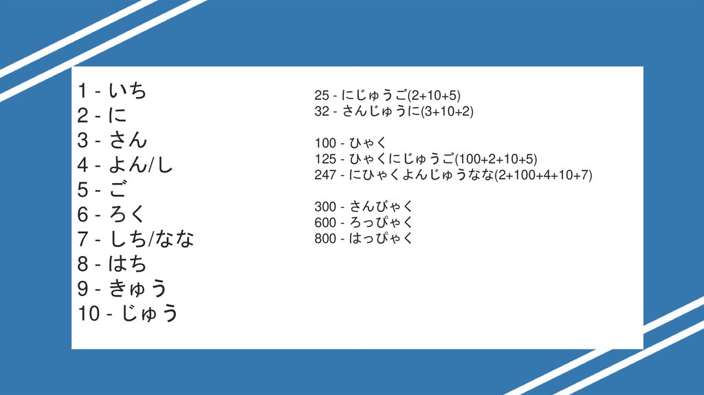 247 - にひゃくよんじゅうなな(2+100+4+10+7)