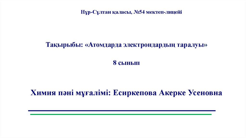 Нұр-Сұлтан қаласы, №54 мектеп-лицейіТақырыбы: «Атомдарда электрондардың таралуы»