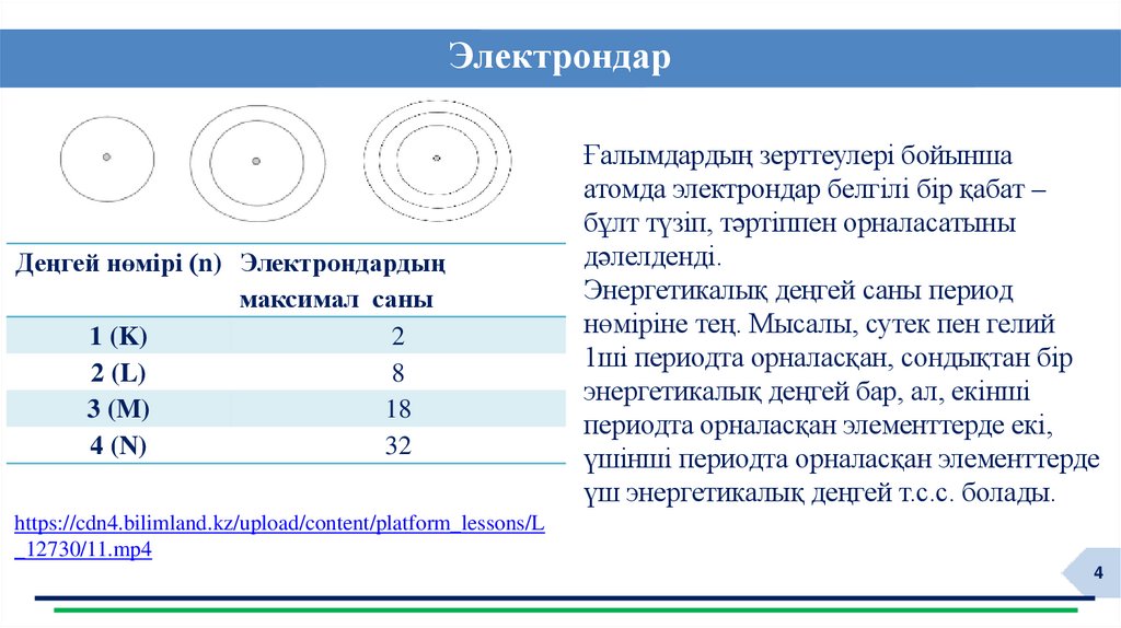 электрондар атомда ядродан арақашықтықтары артып келе жатқан