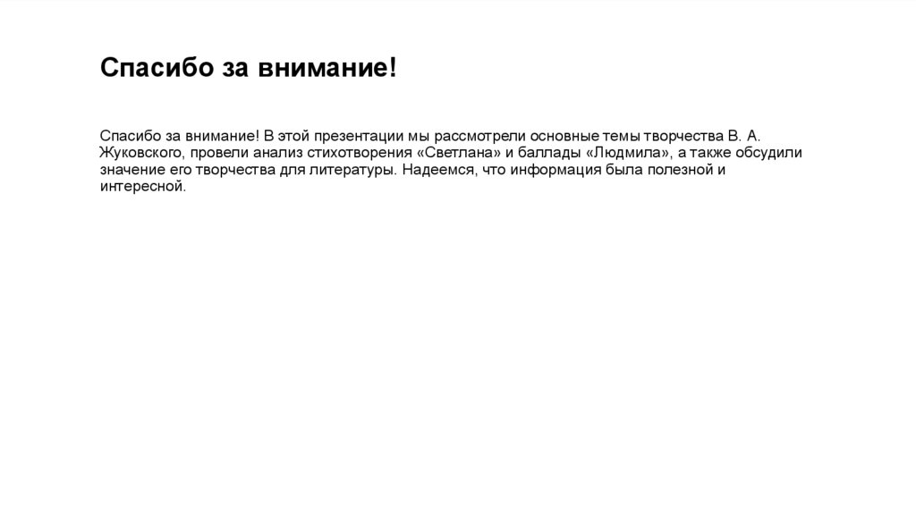Спасибо за внимание!Спасибо за внимание! В этой презентации мы рассмотрели основные темы творчества В. А.