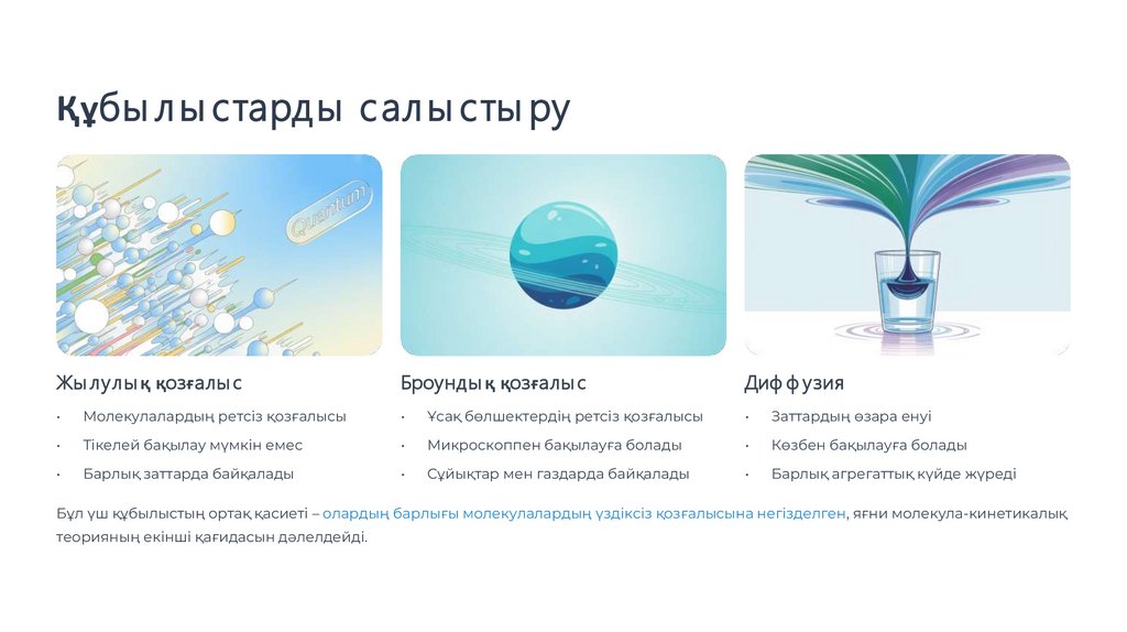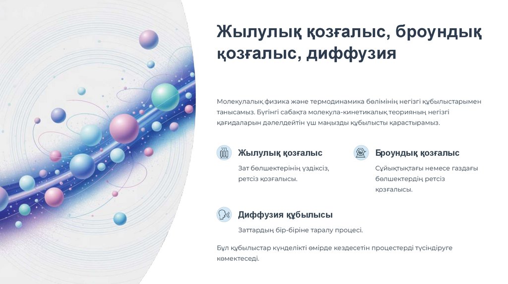 Жылулық қозғалыс, броундық қозғалыс және диффузия анықтамаларын толықтыру