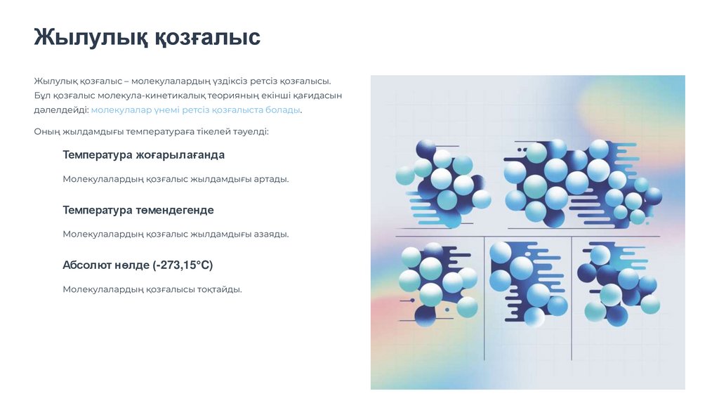 Жылулық қозғалысЖылулық қозғалыс – молекулалардың үздіксіз ретсіз қозғалысы.