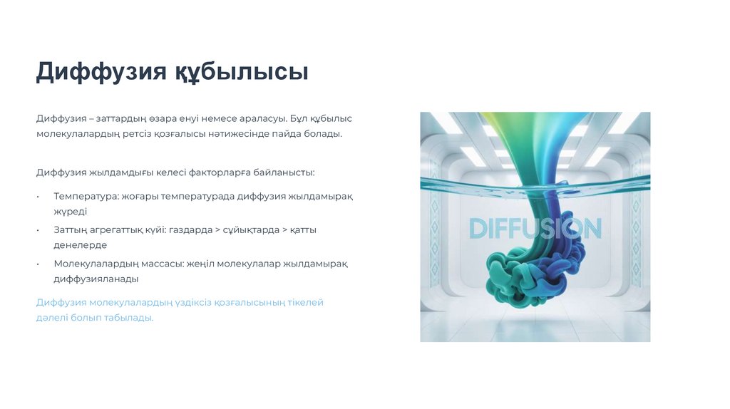 Диффузия құбылысыДиффузия – заттардың өзара енуі немесе араласуы. Бұл құбылыс