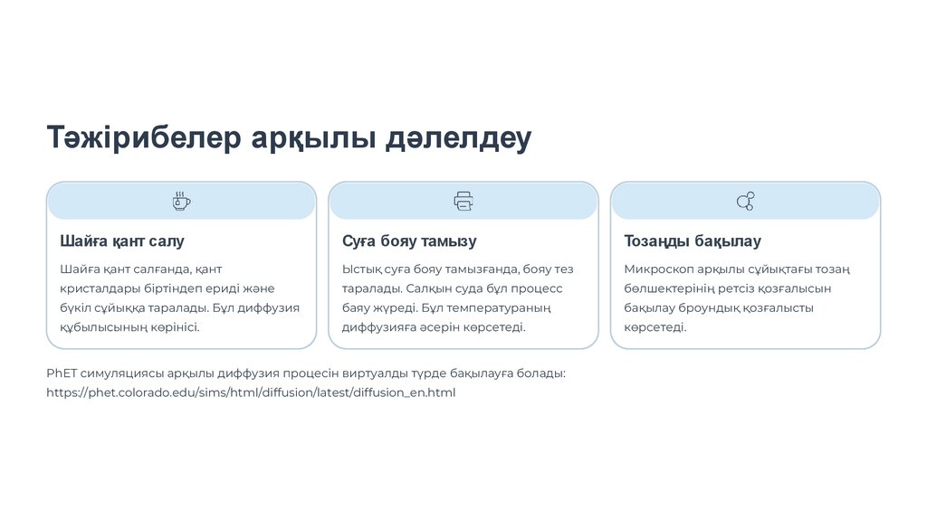 PhET симуляциясы арқылы диффузия процесін виртуалды түрде бақылауға болады: