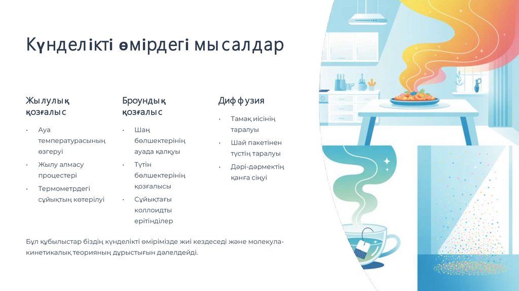 Бұл құбылыстар біздің күнделікті өмірімізде жиі кездеседі және молекулакинетикалық теорияның дұрыстығын дәлелдейді.