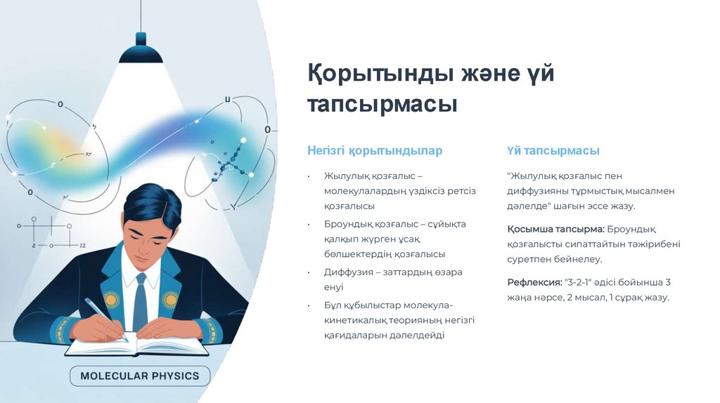 танысамыз. Бүгінгі сабақта молекула-кинетикалық теорияның негізгі