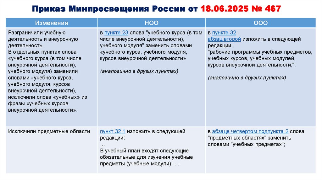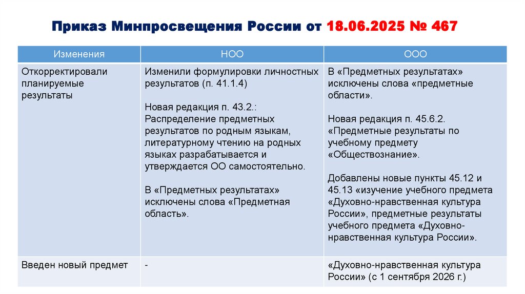 Приказ Минпросвещения России от 18.06.2025 № 467Изменения