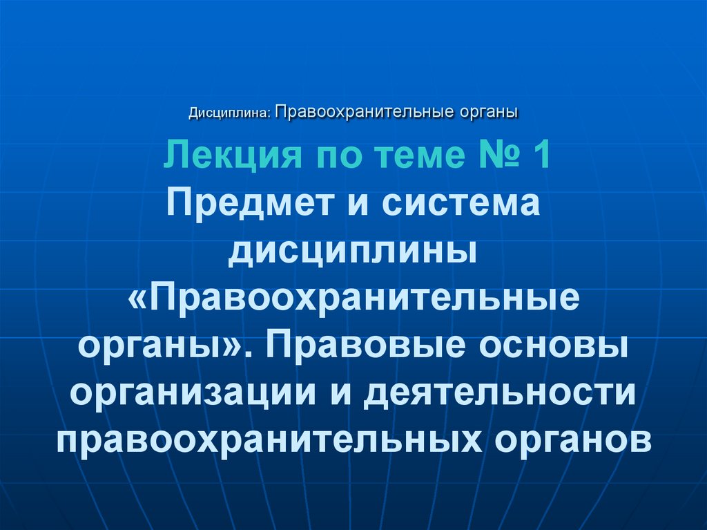 1. Дисциплина: Правоохранительные органы Лекция по теме № 1 Предмет и система дисциплины «Правоохранительные органы». Правовые
