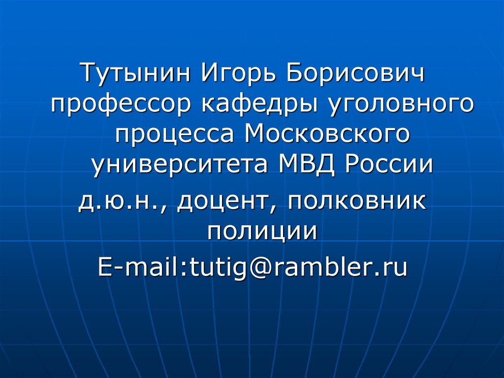 Тутынин Игорь Борисовичпрофессор кафедры уголовного