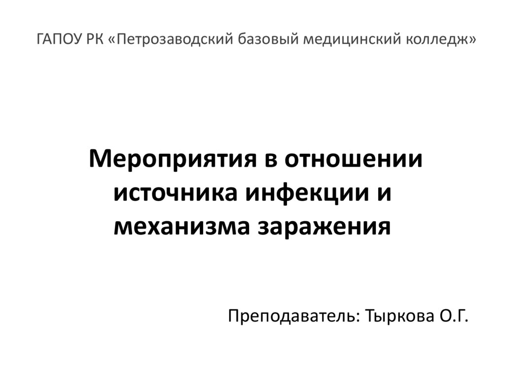 1. Мероприятия в отношении источника инфекции и механизма заражения