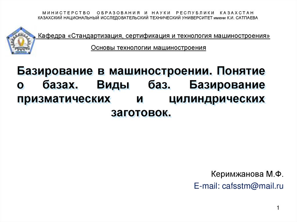 Кафедра «Стандартизация, сертификация и технология машиностроения»