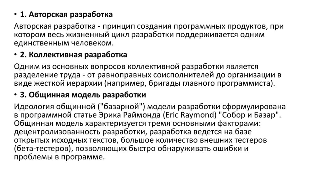 • 1. Авторская разработкаАвторская разработка - принцип создания программных продуктов, при