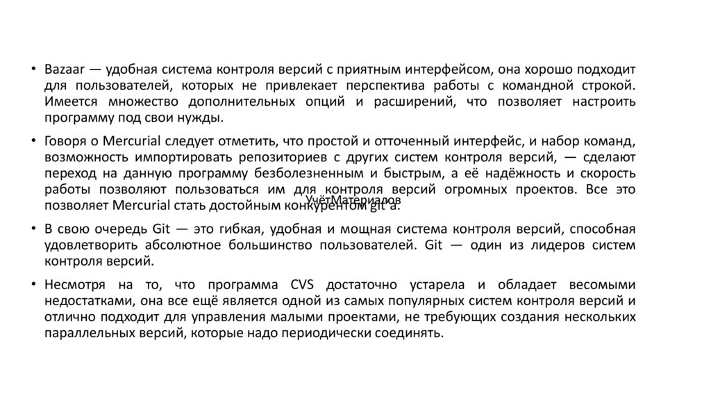 • Несмотря на то, что программа CVS достаточно устарела и обладает весомыми