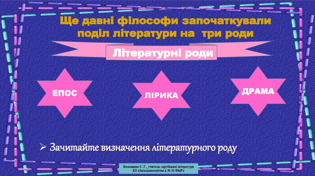 Ще давні філософи започаткувалиподіл літератури на три роди
