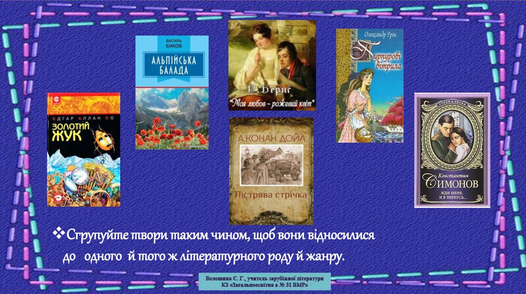 Сгрупуйте твори таким чином, щоб вони відносилисядо одного й того ж літературного роду й жанру.