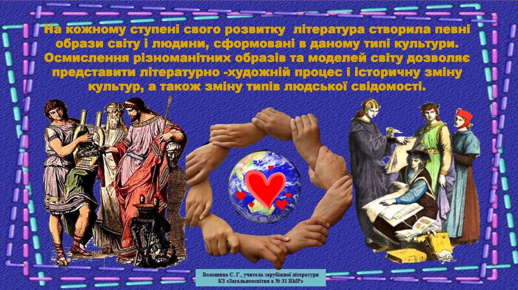На кожному ступені свого розвитку література створила певніобрази світу і людини, сформовані в даному типі культури.
