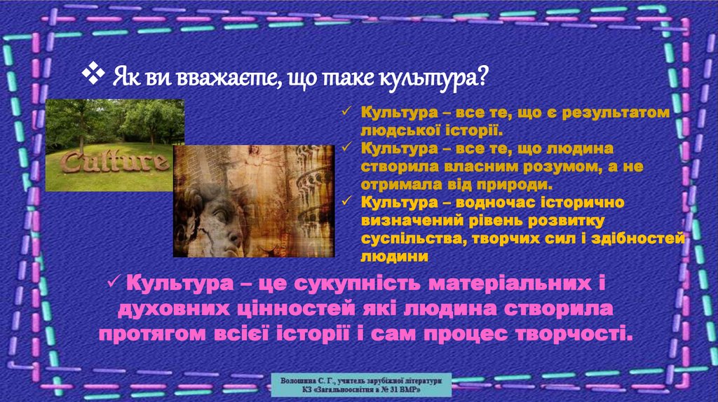 Як ви вважаєте, що таке культура?Культура – все те, що є результатом