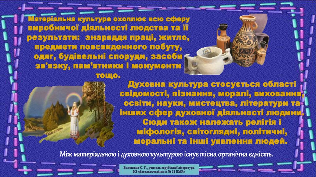Між матеріальною і духовною культурою існує тісна органічна єдність.