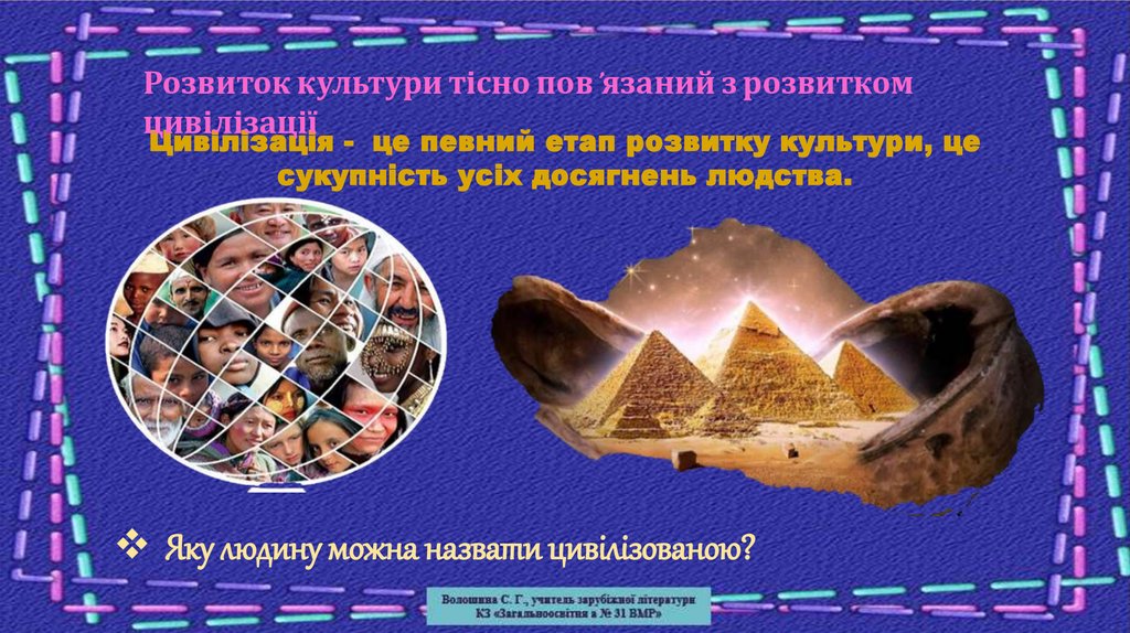 Розвиток культури тісно пов’язаний з розвиткомцивілізації