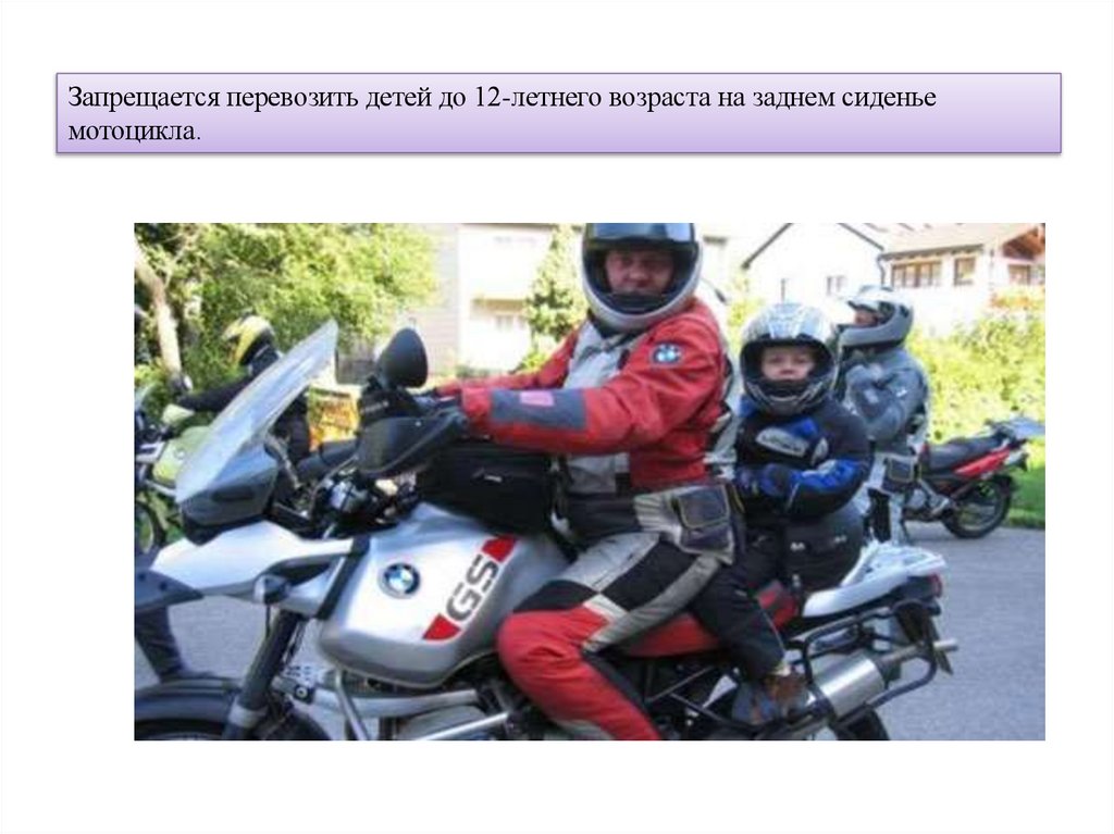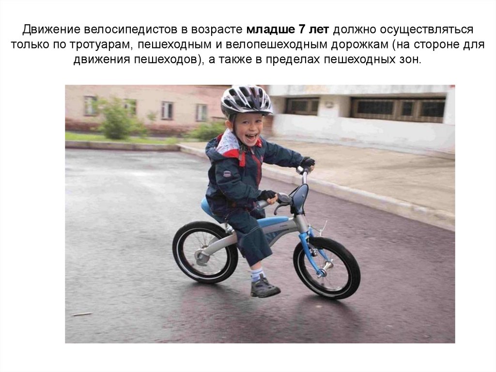 - велосипедист сопровождает велосипедиста в возрасте до 7 лет либо перевозит
