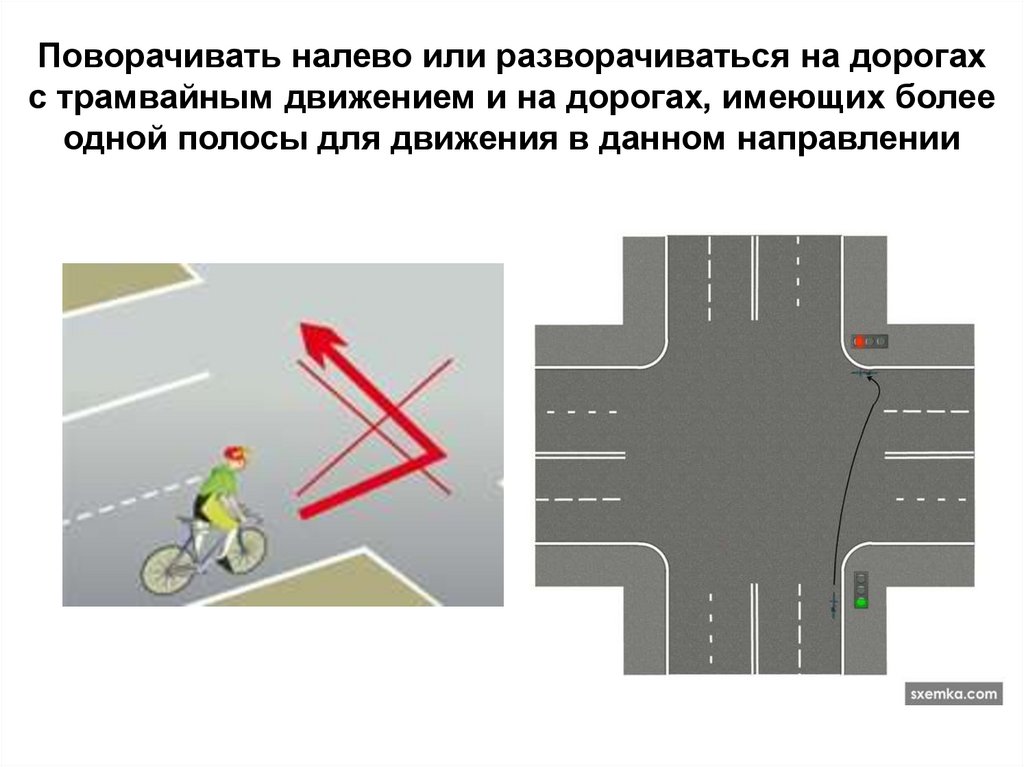 Поворачивать налево или разворачиваться на дорогахс трамвайным движением и на дорогах, имеющих более