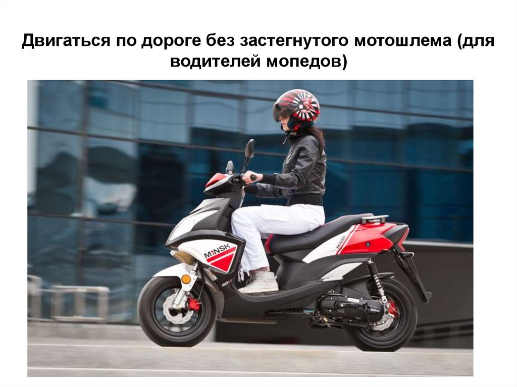 Двигаться по дороге без застегнутого мотошлема (дляводителей мопедов)