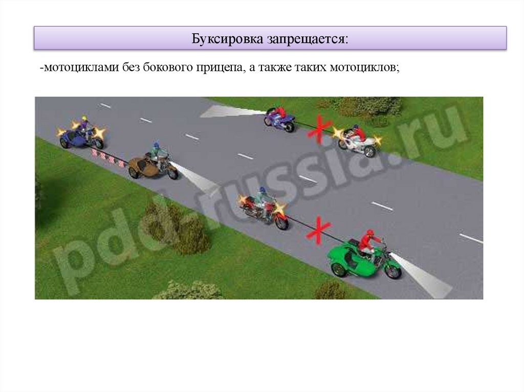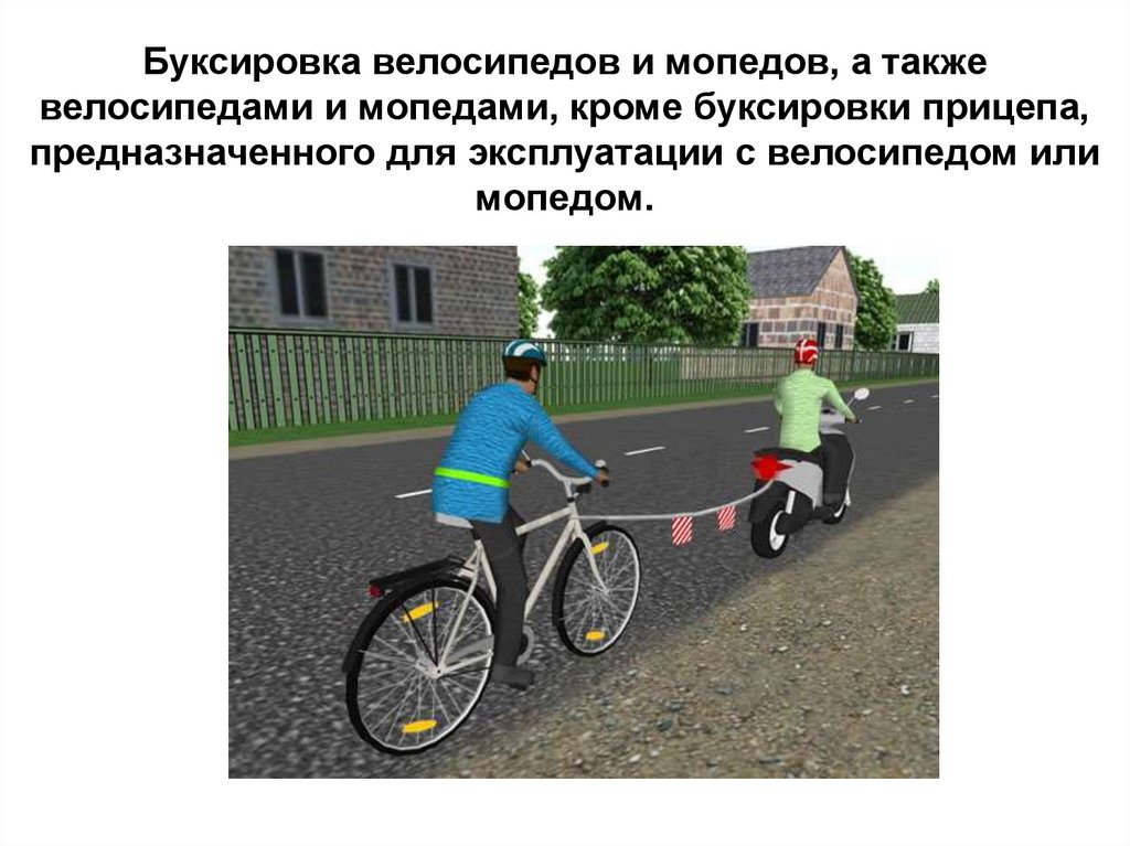 Буксировка велосипедов и мопедов, а такжевелосипедами и мопедами, кроме буксировки прицепа,