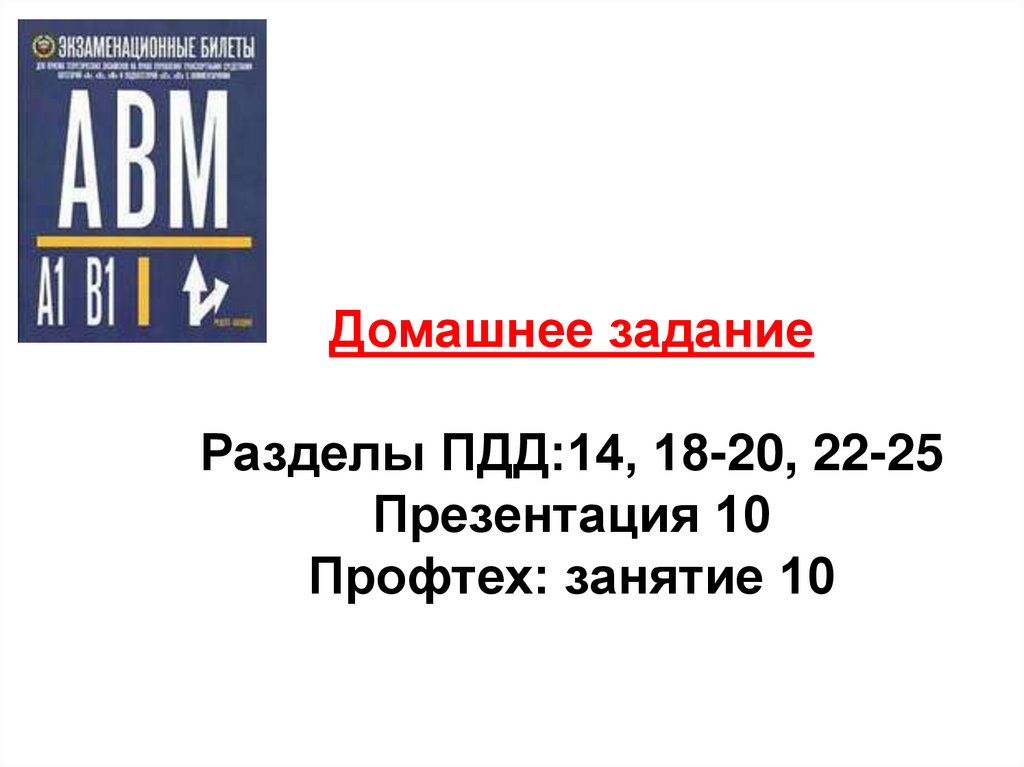 Домашнее заданиеРазделы ПДД:14, 18-20, 22-25