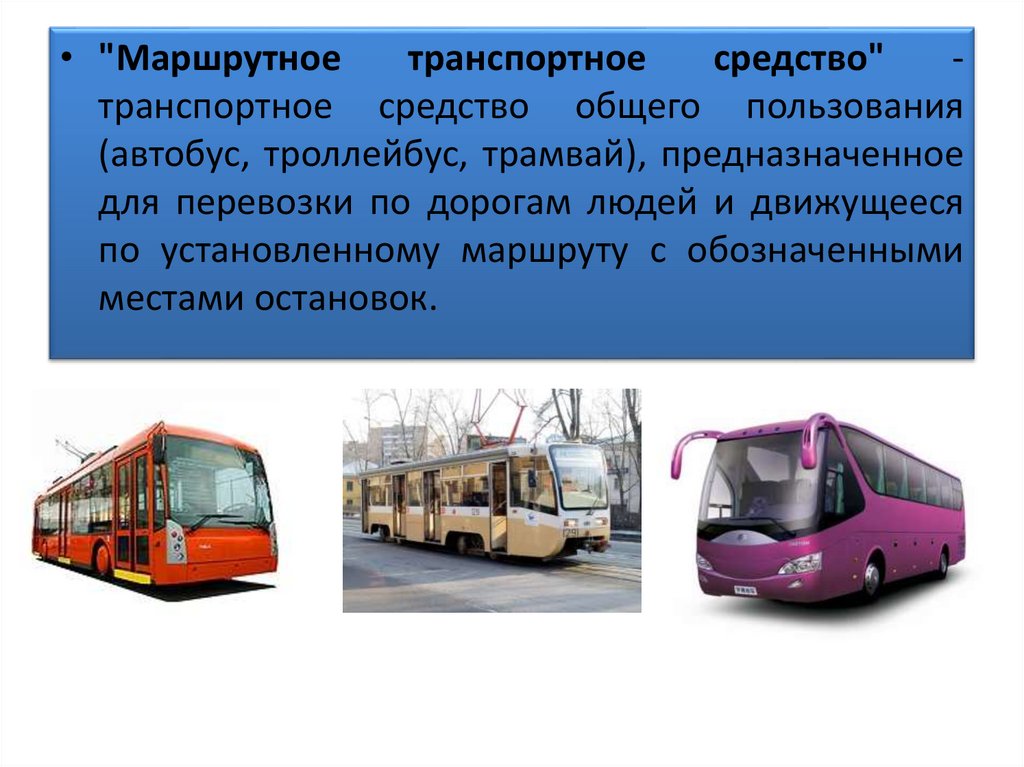 (автобус, троллейбус, трамвай), предназначенное