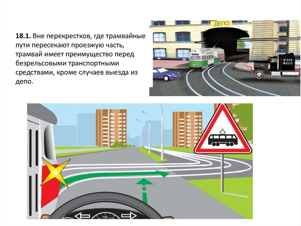 18.1. Вне перекрестков, где трамвайныепути пересекают проезжую часть,