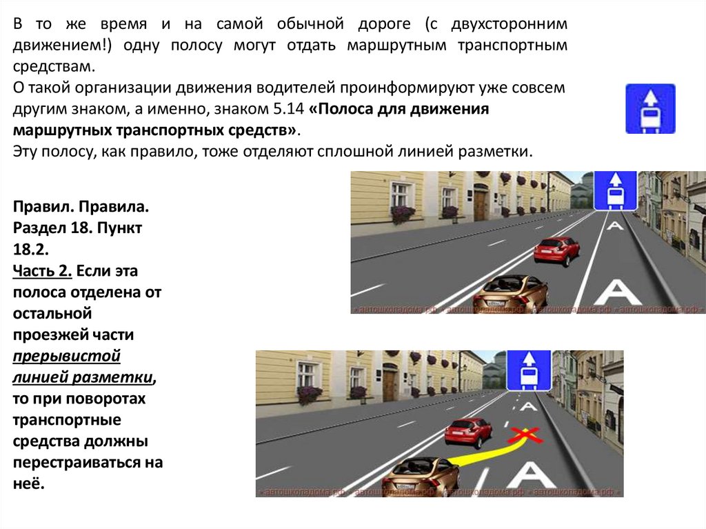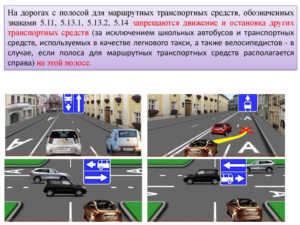 На дорогах с полосой для маршрутных транспортныхсредств, обозначенных знаками 5.11, 5.13.1, 5.13.2, 5.14