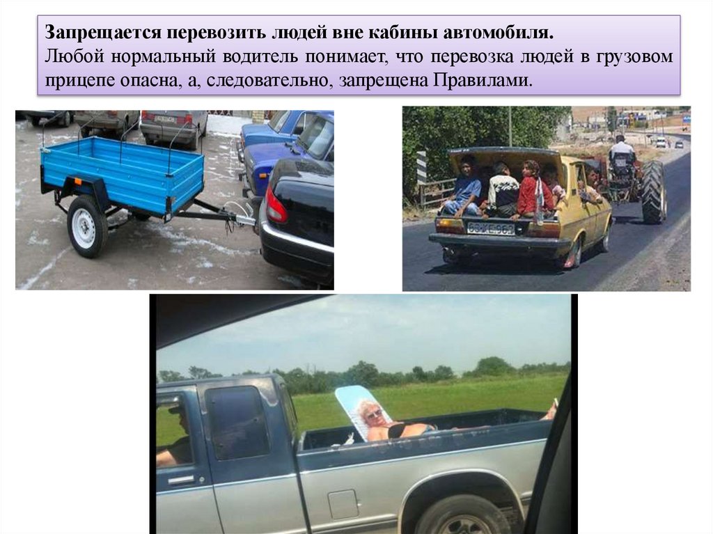 Перевозить пассажиров, если это не предусмотреноконструкцией транспортного средства